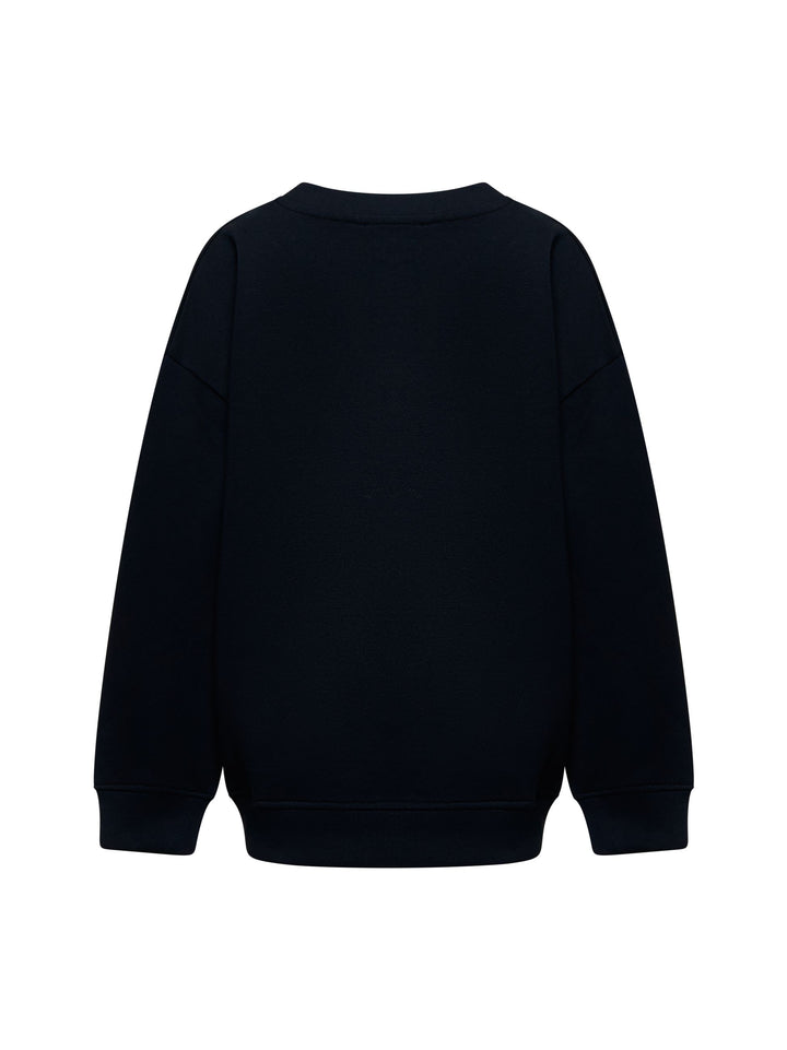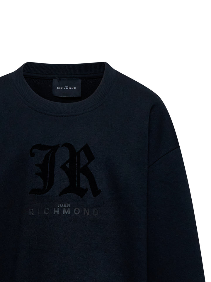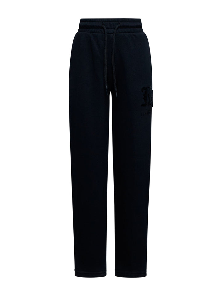 LOGO IN VELLUTO IN RILIEVO SU FELPA E PANTALONE.