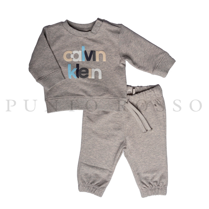 Completo tuta , felpa girocollo con apertura con bottone logo frontale e polsini maniche e in vita , pantalone con logo laterale elastico in vita e polsino caviglia.