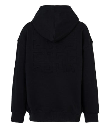 felpa con cappuccio eTasca a marsupio con logo sul davanti e sul dietro in debossed.