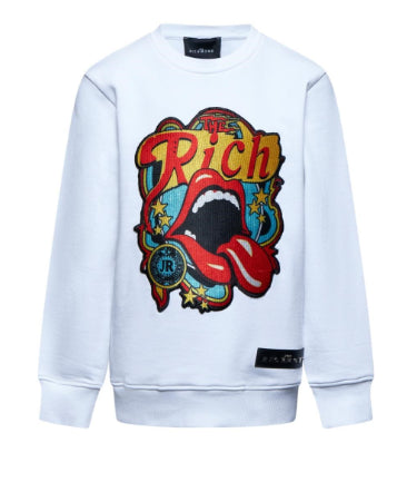 Felpa girocollo oversize con stampa Rich mouth e etichetta logo metal sul davanti.