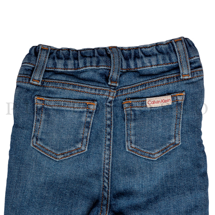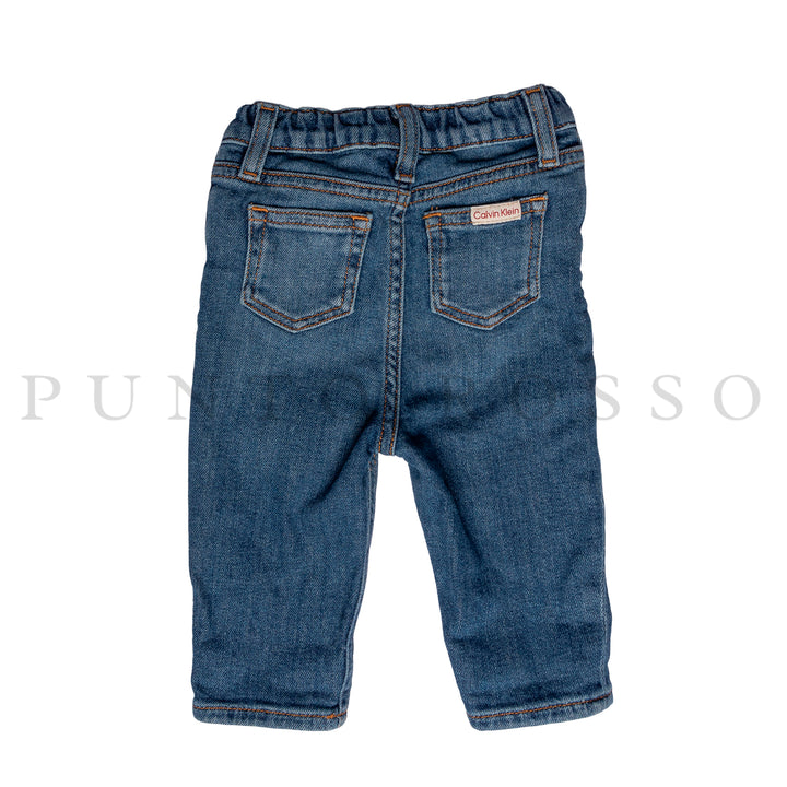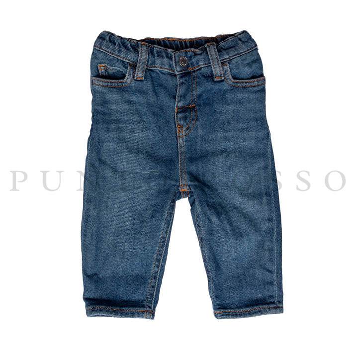 Jeans straight fit , classico 5 tasche con elastico in vita .