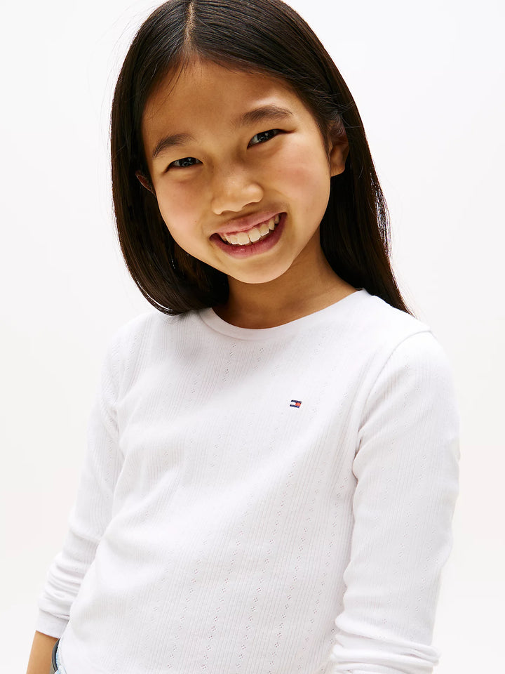 Rinnova il guardaroba con l'incantevole top con motivo pointelle, realizzato in maglia di cotone stretch con un avvolgente taglio extra slim.