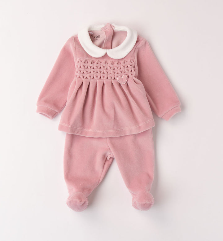 Tutina due pezzi con piede per neonata iDO in ciniglia. L'articolo presenta l'apertura sul retro con bottoni a pressione per agevolare il cambio e la vestizione, fantasia tinta unita con colletto a contrasto. I pantaloni sono elasticizzati ed in fantasia tinta unita. Scegliendo i nostri prodotti in cotone, sostieni il nostro investimento nella missione Better Cotton. La fornitura di questo prodotto avviene tramite un sistema di bilancio di massa e potrebbe non contenere Better Cotton. Leggi di più su bettercotton.org/massbalance