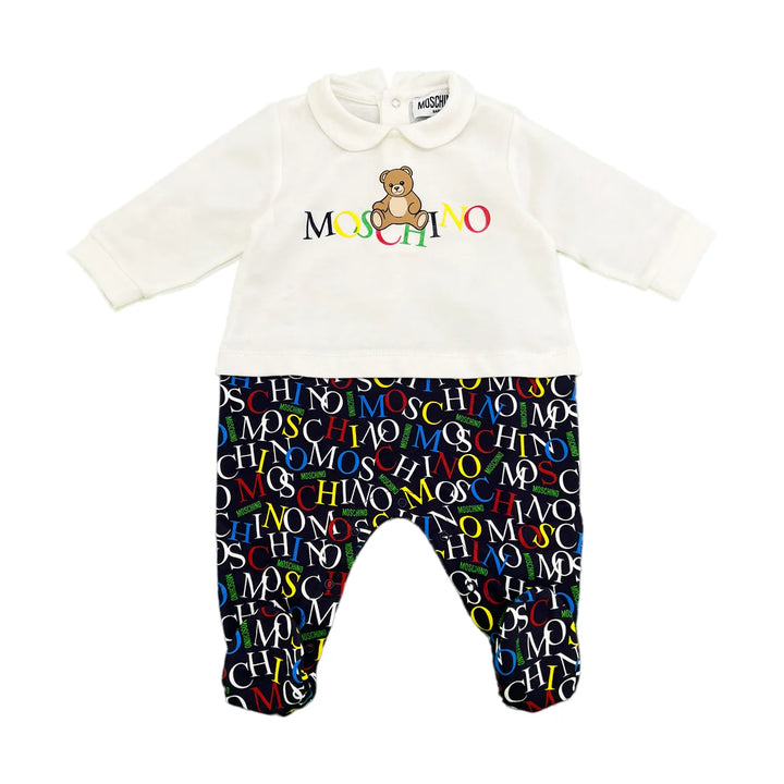 Tutina Moschino morbida e avvolgente, pensata per garantire comfort e stile nei primi mesi. Il taglio pratico con bottoni e il logo iconico donano carattere a un capo essenziale. Ideale per momenti teneri e quotidiani.