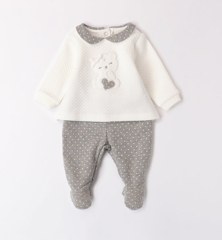 Tutina due pezzi con piede per neonata iDO. La maglietta è realizzata in jersey con apertura sul retro con bottoni a pressione per agevolare il cambio e la vestizione. La ghettina è in felpa invernale con fantasia all over. Scegliendo i nostri prodotti in cotone, sostieni il nostro investimento nella missione Better Cotton. La fornitura di questo prodotto avviene tramite un sistema di bilancio di massa e potrebbe non contenere Better Cotton. Leggi di più su bettercotton.org/massbalance